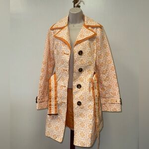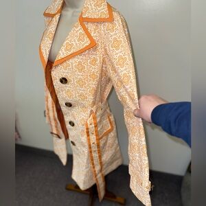 Steve Madden (Medium) Orange/White Pattern Button Up Raincoat