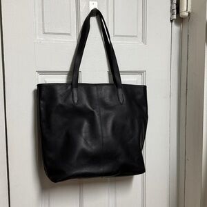 beautiful smooth black Leather carry all tote. gorgeous gift never used 16 inches wide and 12 inches high