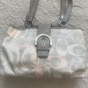 Gray and Pink Coach Signature Tote Bag