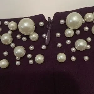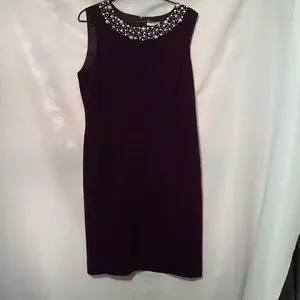Calvin Klein Deep Purple Dress Embellished FAUX PEARL Neckline WOMENS SIZE 14