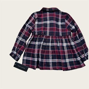 Charming plaid shirt with button-down front. Features classic collar and chest pocket. Ideal for everyday wear. It’s a set but I cannot find the navy blue leggings anymore.