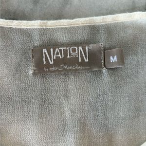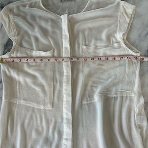 Nation Ivory Sleeveless Sheer Blouse with large Front pockets. 100% rayon. Super lightweight. Long fit. Size medium. Gently used condition.