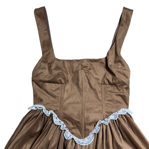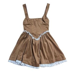 For Love & Lemons •Brown •Suede •Lace Trim •Corset Detail Front •Bonet Included •Tulle Skirt Lining •Tank Straps •Western •Cowboy •Cowgirl •Country •Rodeo •Back Exposed Zipper