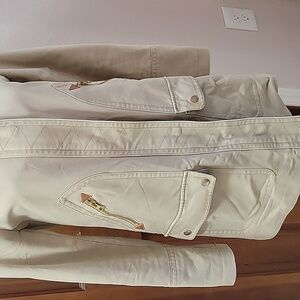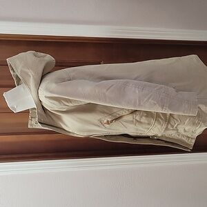 Chic utility jacket with a hood. Features front pockets and button details. Ideal for layering.