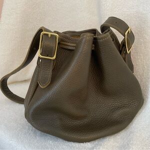 Brand new! Gorgeous bag in pebbled cypress leather. This bag was ordered by me before I fell in love with the KMM zip top bucket. Pristine, heirloom quality leather in deep soft olive, roomy bag with adjustable strap. Retails for $425.