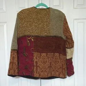 This jacket has the Indigo Moon mystique-rich, saturated tones arranged in a mosaic of textured patches. Kimono inspired.
