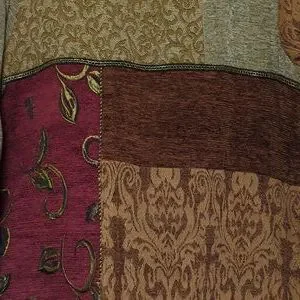 Each panel is intentional: velvety patches, brocade patches and patches with metallic threads that catch the light.