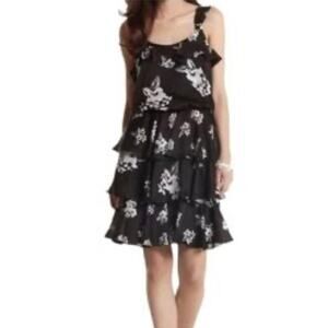 White House Black Market Floral Layered Sleeveless Dress Size 8 Black Cream