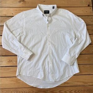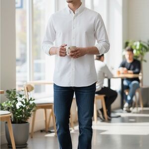 Sleek white shirt with a modern trim fit. Ideal for versatile styling.