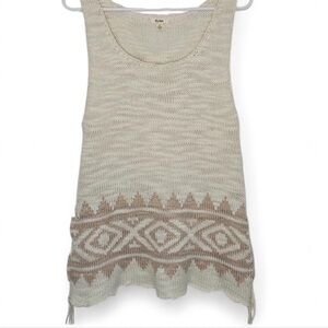 Dylan Cream and Tan Aztec Patterned, Side-Tie Sleeveless Knit Top. L/XL.