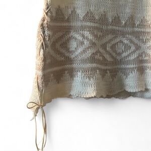Cream and tan knitted boho Aztec tank/halter top with faux suede lace up tie sides.