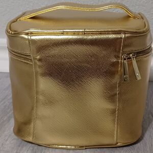 CANTECAILLE gold vanity makeup bag with yellow lining
