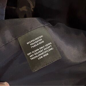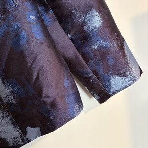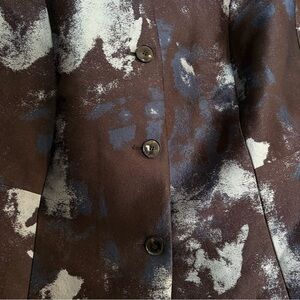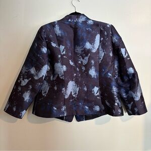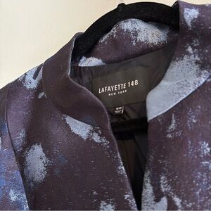 Lafayette 148 New York patterned silk-blend blazer in an abstract blue night multi print. Three buttons, no pockets. Retailed new for nearly $500. Never worn.