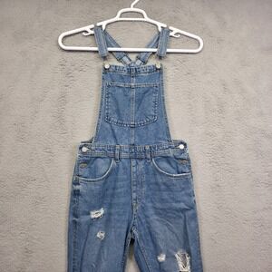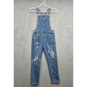 H&M &Denim Overalls Womens 2 Blue Slim Fit Distressed Ripped Medium Wash Jean