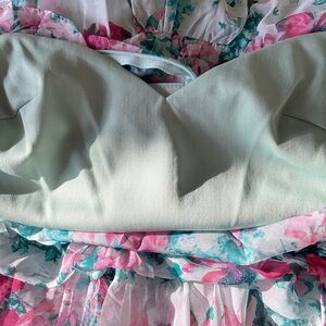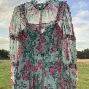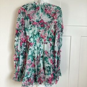 Mac Duggal Long-Sleeve Ruffled Floral Chiffon🦋Tiered Mini Dress