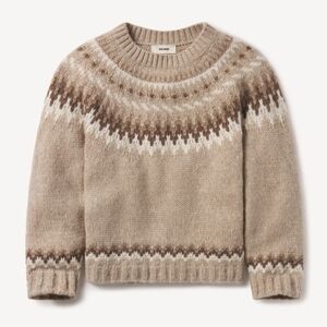style: An oversized alpaca sweater with a classic Fair Isle design and an open neckline.