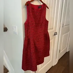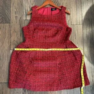 Elegant red tweed dress by Cider. Features a sleeveless design.
