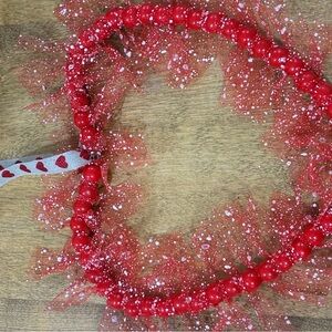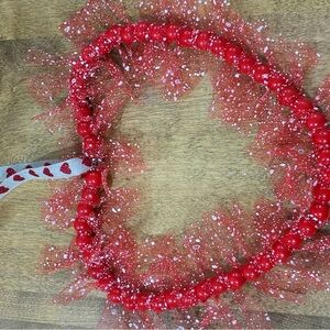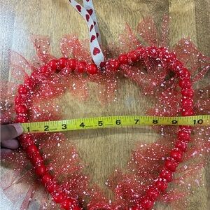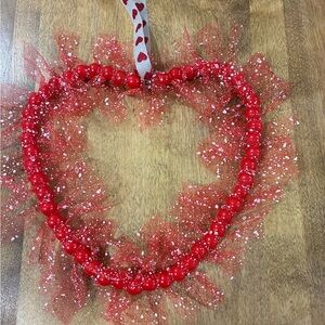 Beautiful red beaded heart wreath with a decorative ribbon. Perfect for adding a touch of love to any space.