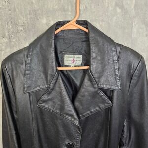 Vintage 90s Giorgio 1966 Italian Black Leather Coat Jacket Women's 46 Medium