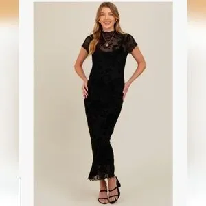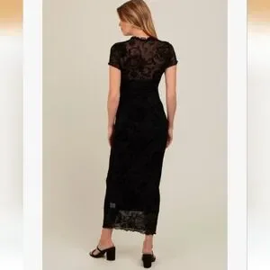 NWT.. black sphagetti strapped inner dress serves as the lining for this flocked lace bodycon overdress. Size S
