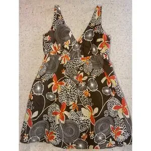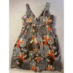 Old Navy Dress Women's XL Brown Print 2007 Y2K 100% Cotton Boho Fairy Cottage