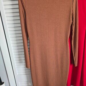 NWT Boohoo Basics Ribbed High Neck Long Sleeved Midi Dress