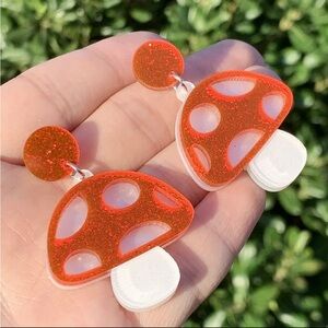 Add a touch of whimsical charm to your look with these bold red glitter mushroom earrings! Featuring a classic toadstool shape with sparkly red caps and shimmery white spots, these playful acrylic dangles are lightweight, eye-catching, and full of personality. Perfect for nature lovers, cottagecore fashion, festivals, or anyone who loves a quirky accessory that makes a statement.
