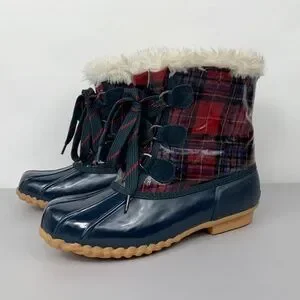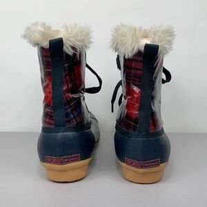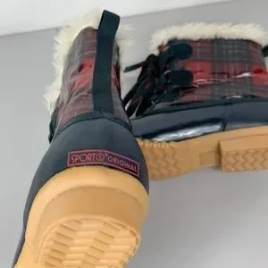 SPORTO Women's Kim waterproof plaid rubber faux fur lace-up snow boots.