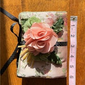 Goody Floral Embroidered Travel Jewelry Pouch with Pink Flower