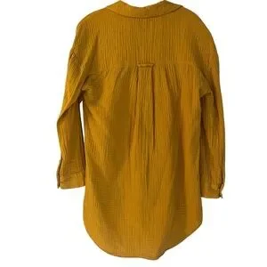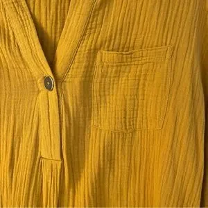 Cupio Textured 100% Cotton Mustard Yellow Tunic Top Sz M