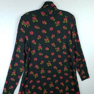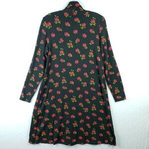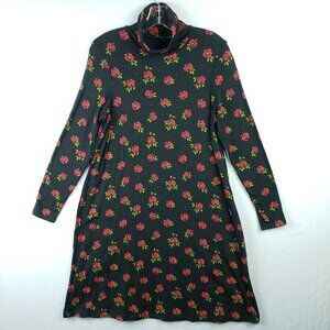 Gudrun Sjoden Dress Jersey Turtleneck Long Sleeve Floral Rose Print Black Size S