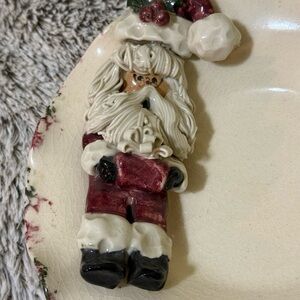 Charming decorative plate featuring a Santa Claus design. Perfect for holiday decor.