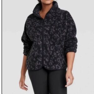 All in Motion Leopard Print Zip-Up Sherpa Fleece Jacket Coat Animal Print SZ XS
