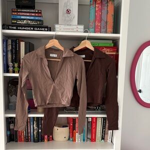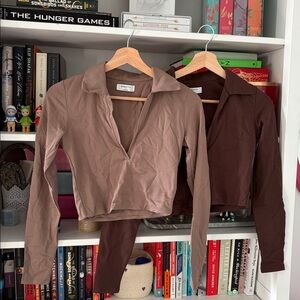 BNWOT babaton aritzia size S polo cropped contour top bundle Never worn, I gained weight before getting a chance to wear them Wrinkled from storage Ones a taupe brown, ones a cocoa brown Comes with both Comes from smoke free and pet free home