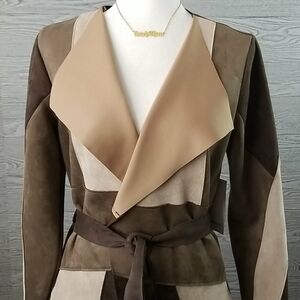 ZARA // ltd ed rare faux patchwork suede belted trench coat