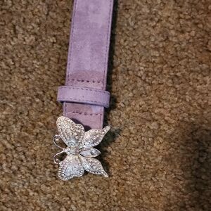 Chic lavender belt with a sparkling silver butterfly. Perfect for adding flair.