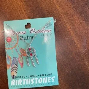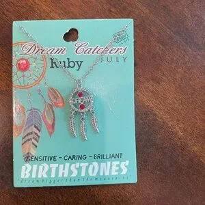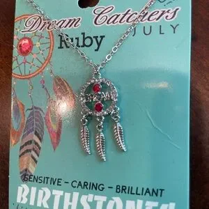 Silver Dream Catcher Necklace with Red Accents (July)