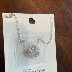 Silver dream catcher necklace featuring red accents. Perfect for adding a touch of elegance.