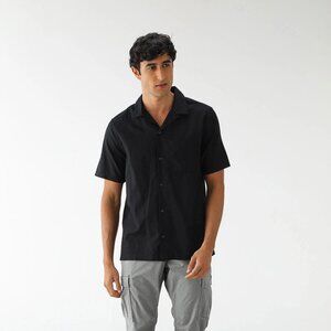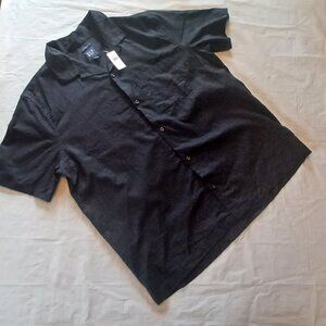 NWT GAP Mens Black L Cotton Blend Short Sleeve Button Down Collared Shirt