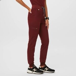 Figs High Waisted Zamora Jogger Scrub Pants Burgundy Small Petite