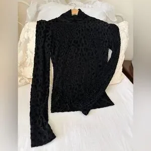 Elegant black turtleneck with textured pattern. Ideal for a sophisticated style.