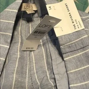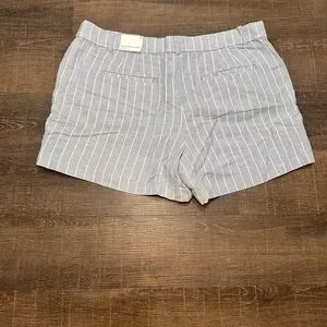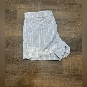 LOFT Floral Embroidered Stripe Riviera Shorts Blue Striped Linen Blend Size 14