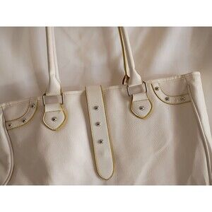 Elizabeth Arden Large White Tote Bag XL White Gold Trim 14"x15" . Condition is Pre-owned - Good. Shipped with USPS Ground Advantage.