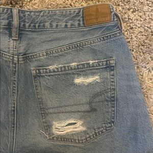 American Eagle light wash destroyed denim tomgirl jean shorts size 6