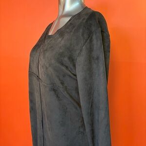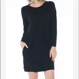 Introducing the Aurora Long Sleeved Dress by Joh, a timeless piece in a versatile black shade. Crafted from elevated faux stretch suede, this mini-length dress or tunic delivers an easy relax fit with a classic shirt silhouette. It features a crewneck and long sleeves, offering a super soft and comfy wear.