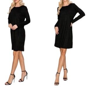 Joh. Black Faux Suede Aurora Long Sleeve Dress