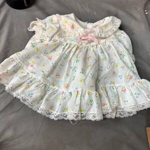 Vintage Dreamboat Floral Baby Dress with Lace Trim size 12 months
