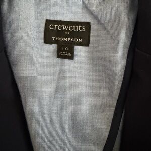 Stylish dark blue sport coat by Crewcuts. Ideal for formal and casual events. Features a classic design with button closure.