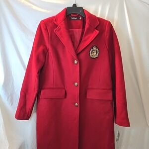 Lauren Ralph Lauren Long Red Wool Blend Button-Up Coat With Crest Patch Size 8