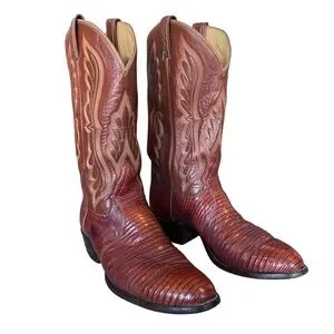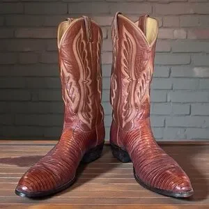 Tony Lama Men’s Sz 11D 8540 Vintage Brown Tan Exotic Leather Lizard Western Cowboy Boots. Excellent condition.